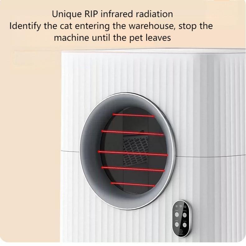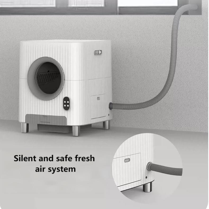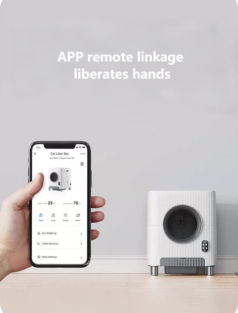 This smart cat litter box can recognize multiple cats and monitor their weight, toilet duration, and frequency in real time, providing comprehensive health tracking for your pets. The automatic waste removal function frees your hands, so you don’t have to worry about hygiene even during long trips. With low-noise operation and a fresh air system, it offers a new experience in pet care and keeps your home odor-free.