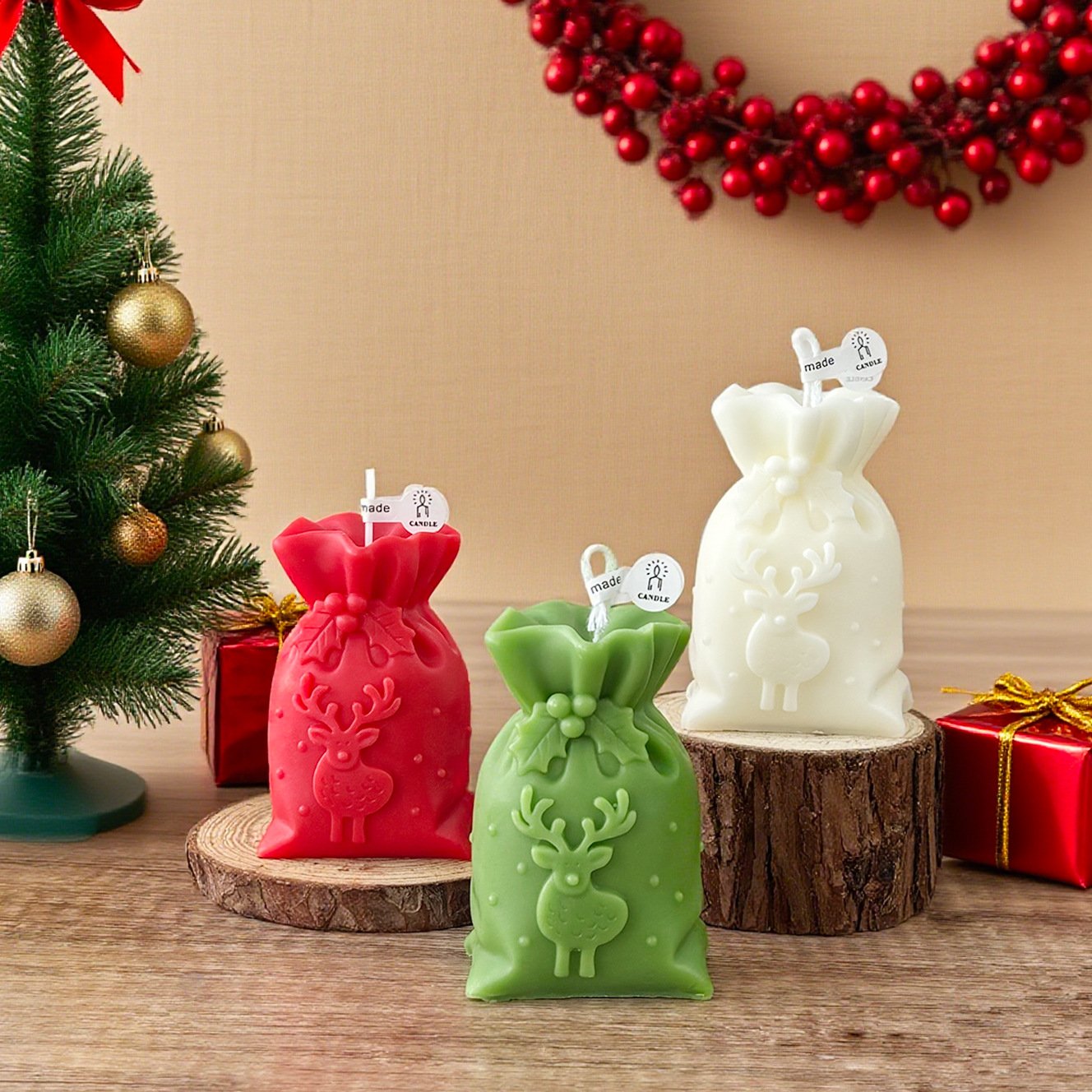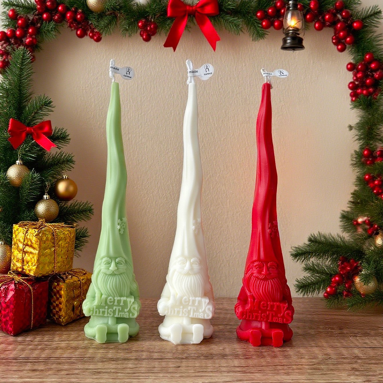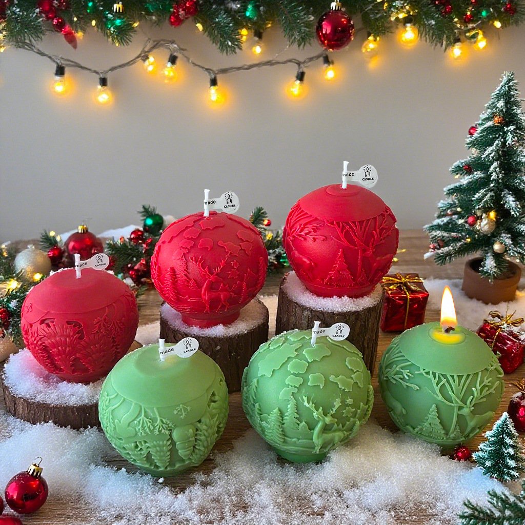 Bring holiday magic to life with this whimsical collection of Christmas-themed scented candles. Featuring Santa figures, festive trees, pinecones, and cozy cottages, each candle is handmade with intricate detail and available in delightful holiday colors.