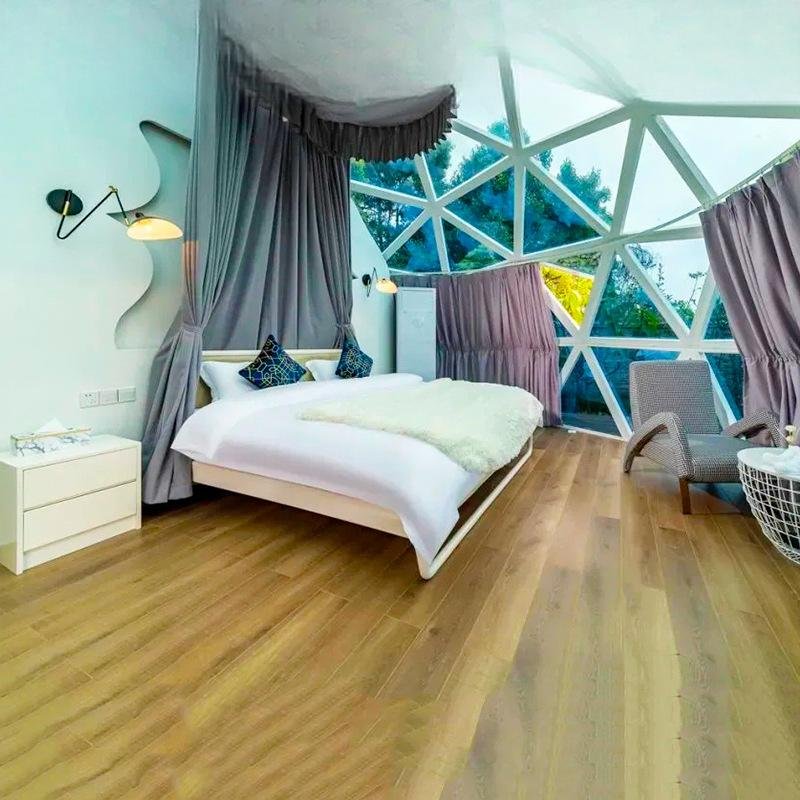 The Glass Spherical Tent is crafted with high-quality, reinforced glass panels and a sturdy framework that offers unmatched durability, ensuring it withstands various weather conditions. Its spherical design provides excellent wind resistance, and the glass panels are treated to offer protection against UV rays and extreme temperatures. Stay cozy and sheltered while enjoying stunning views of nature.