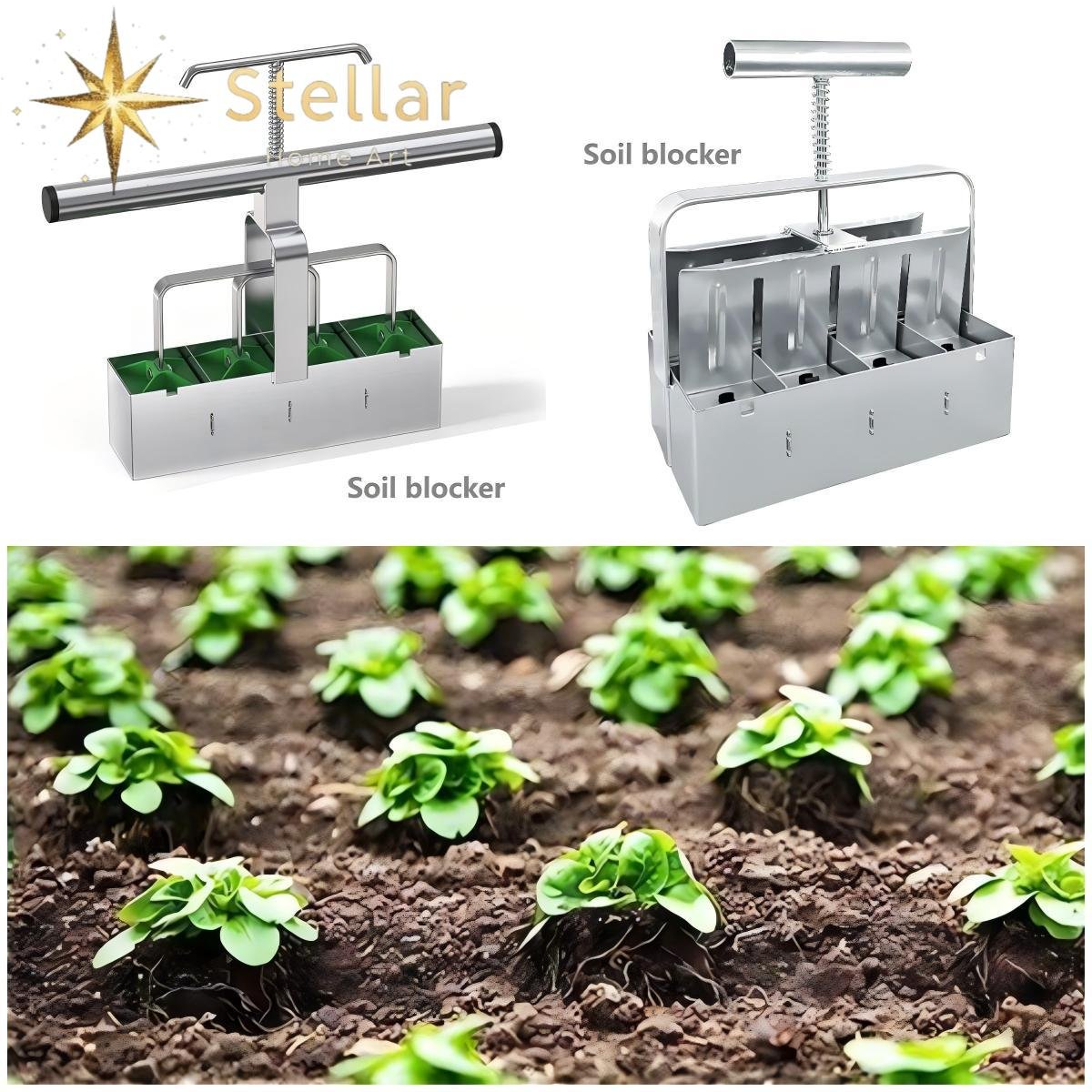 This soil blocker creates uniform, eco-friendly seed starter blocks that eliminate the need for plastic trays, helping roots grow strong and transplant easily. Made from durable stainless steel with a comfortable handle, it’s perfect for gardeners, farms, and greenhouses to start healthy seedlings efficiently.